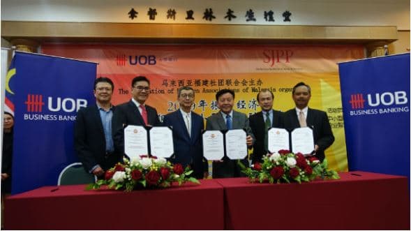 (吉隆坡6日讯)由福联会经济组日前举办“2019年振兴经济-UOB大华银行中小型融资讲座会”,在总会长丹斯里林福山、UOB副执行长白思源及SJPP执行长陈元庆的见证下,福联会代表署理总会长陈康益、大华银行代表执行总监崔庆麟与SJPP代表总经理阿兹兰签署合作备忘录。