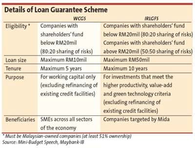 THE RM60bil second economic stimulus package announced on March 10 contained two government guarantee schemes to encourage bank lending, particularly to small and medium-scale enterprises (SMEs). The two are: the RM5bil Working Capital Guarantee Scheme (WCGS), and the RM5bil Industry Restructuring Loan Guarantee Fund Scheme (IRLGFS).