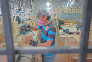 KAKITANGAN Kawood, Azlan Hadi Abu Bakar melakukan kemasan akhir pada salah satu produk kayu di bengkel Kawood di PPR Seri Cempaka, Kuala Lumpur. - UTUSAN/MUHAMAD IQBAL ROSLI