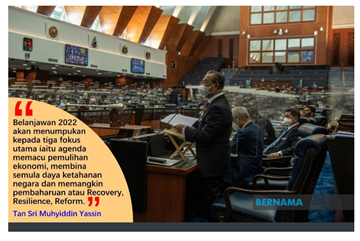 “Saya juga ingin maklumkan, Belanjawan 2022 akan menumpukan kepada tiga fokus utama iaitu agenda memacu pemulihan ekonomi, membina semula daya ketahanan negara dan memangkin pembaharuan atau Recovery, Resilience, Reform.